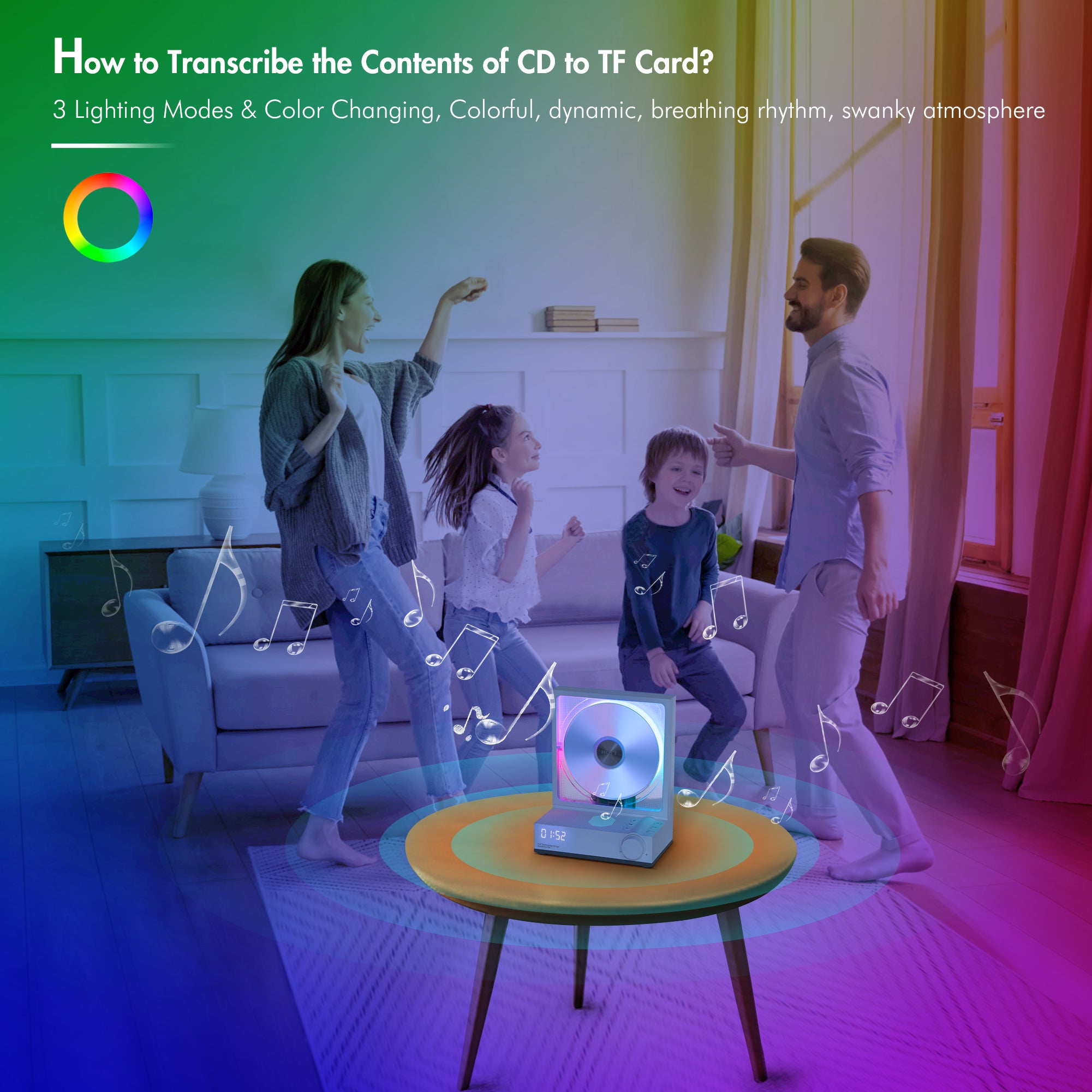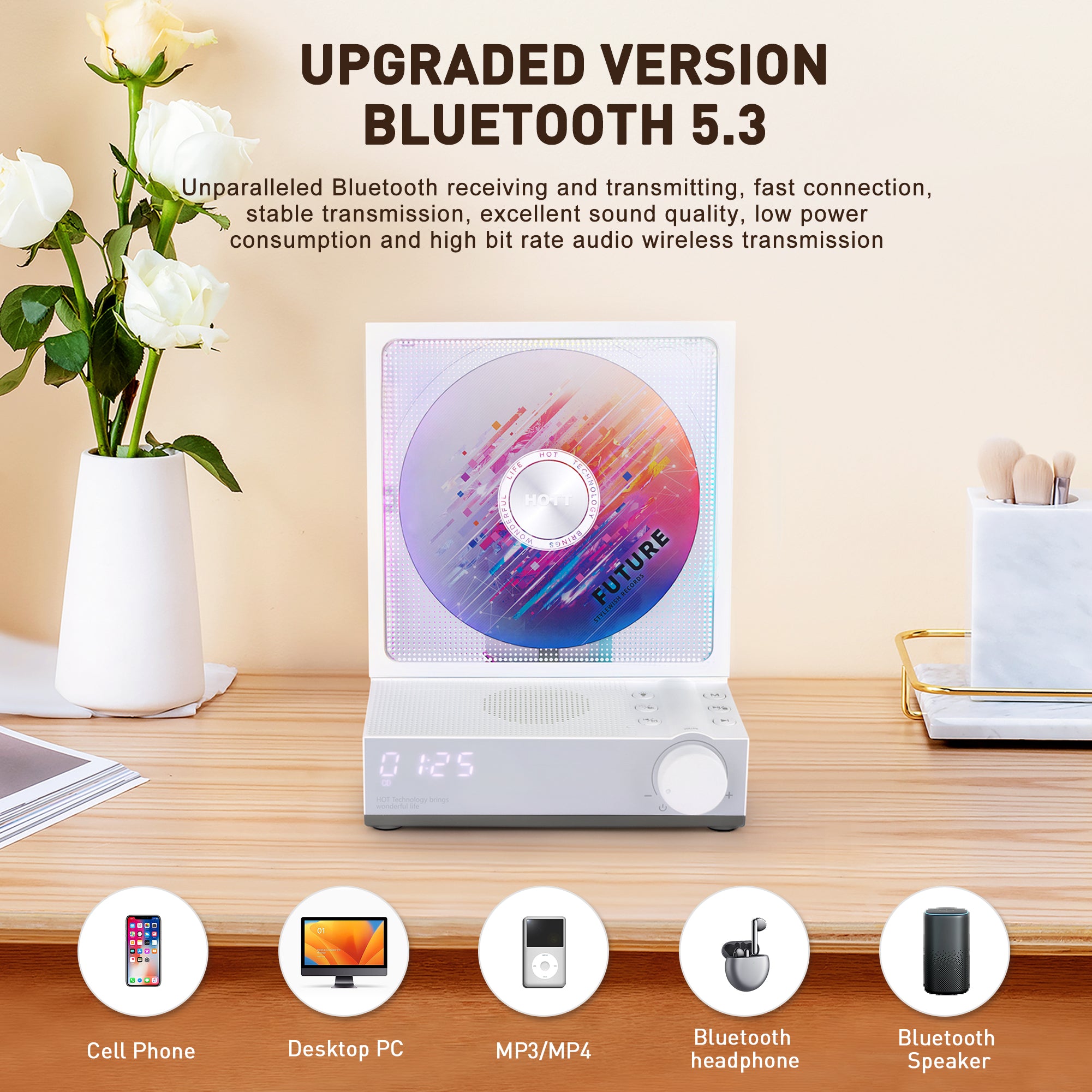 Multi-functional CD Player with Remote Control, RGB Light, Bluetooth 5.3, HiFi Sound, and Superior Sound Quality. Your Ultimate Music Companion!